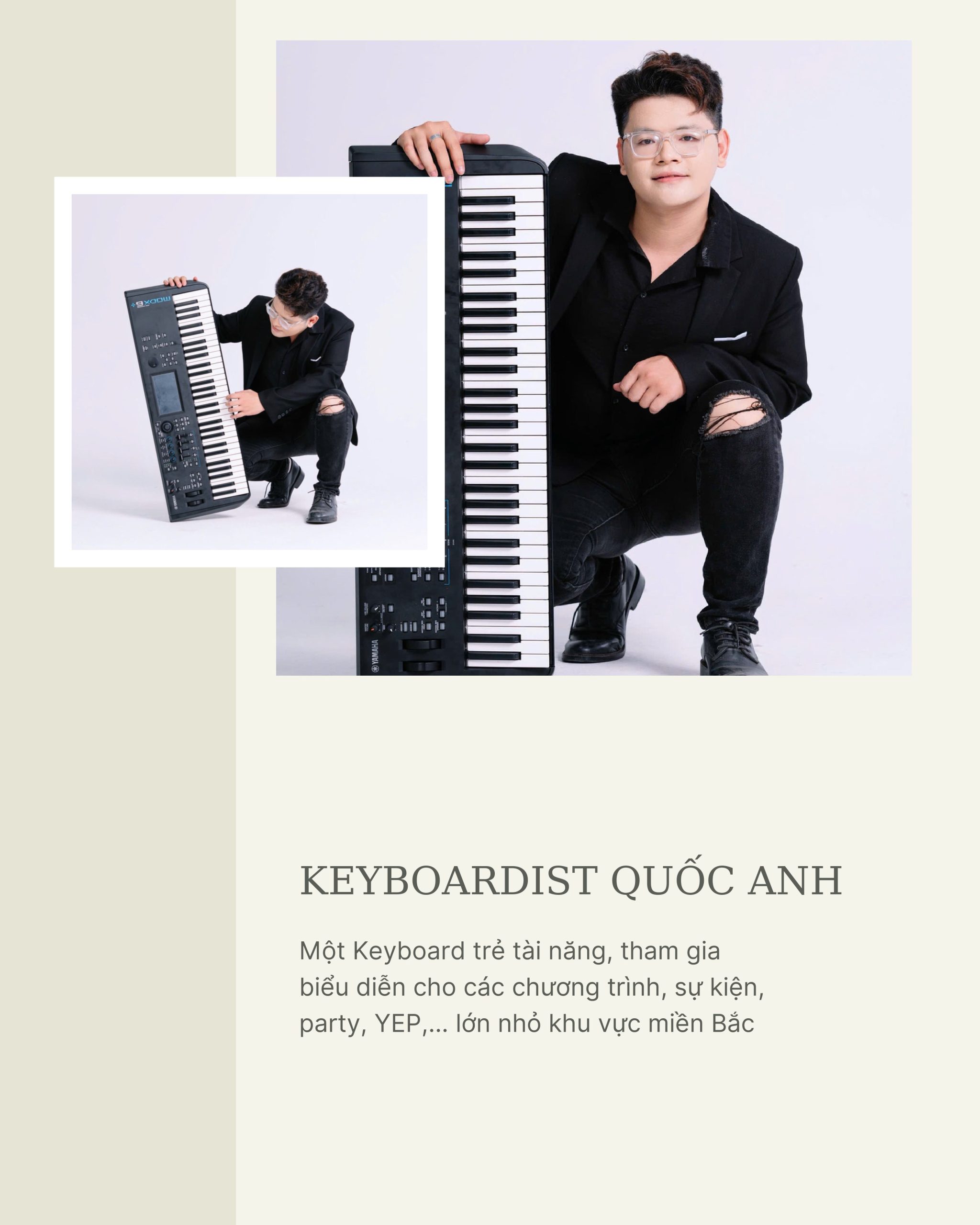 Quốc Anh là keyboard trẻ tuổi nhưng dày dặn kinh nghiệm sân khấu, thường xuyên tham gia biểu diễn tại các sự kiện lớn như Year End Party, lễ khai trương, private party,…