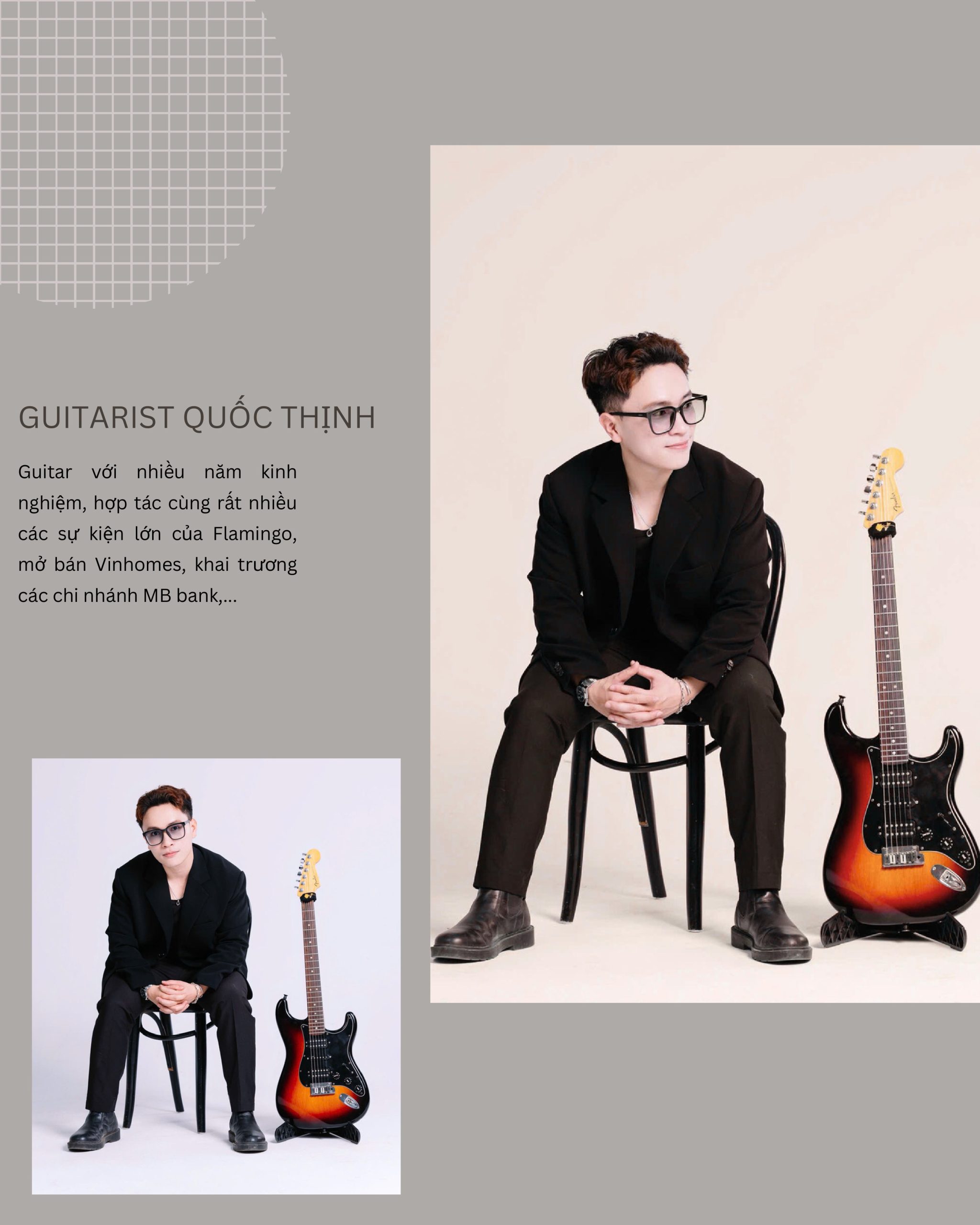 Guitarist Quốc Thịnh là nghệ sĩ có kinh nghiệm biểu diễn đa dạng, từ các đêm nhạc lãng mạn đến chương trình sự kiện quy mô lớn.